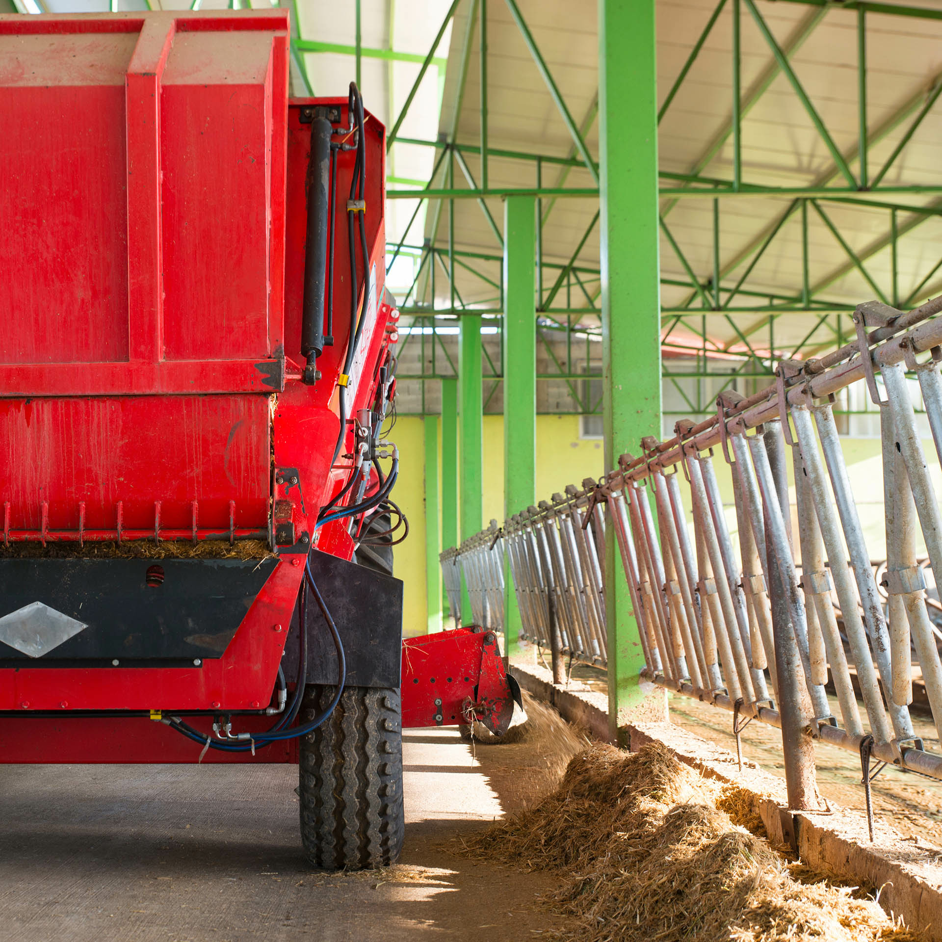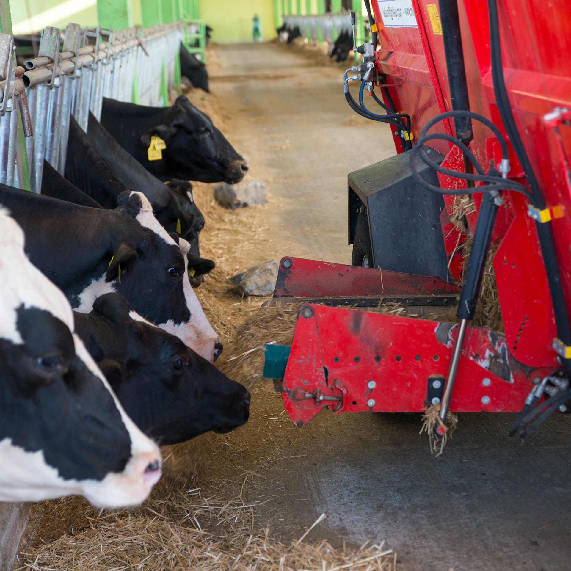 For this purpose, cattle farmers ride with modern feeding wagons in their stables to ensure accurate preparation and distribution of feed mixtures.